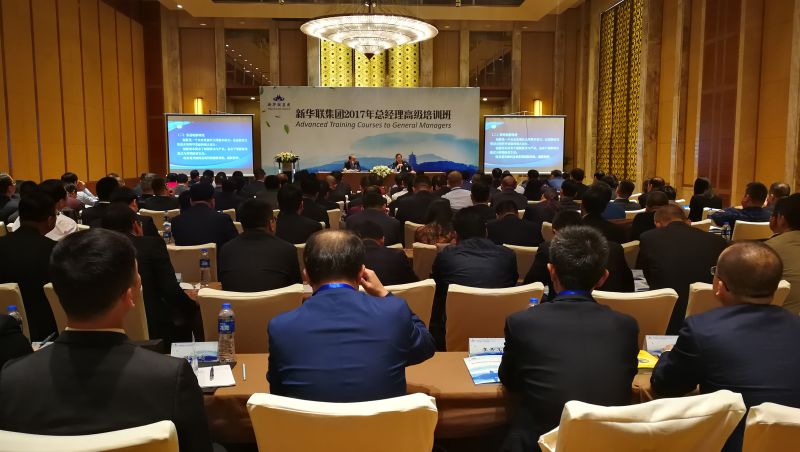 10月20日,新華聯集團2017年總經理高級培訓班在杭州西溪喜來登大酒店如期開班。傅軍總裁在以《發展新理念、集團新戰略》為題的重要講話中,明確提出了集團順應新時代發展的新理念、新戰略、新舉措和新目標。