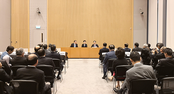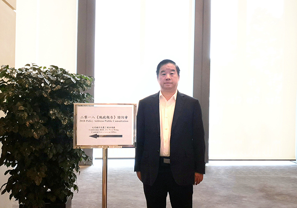 8月30日下午,香港特區政府在添美道總部大廈召開2018施政報告咨詢會。會議由特首林鄭月娥主持,近60位港區全國人大代表、全國政協委員參加了此次會議。全國政協委員、新華聯集團總裁傅軍應邀出席。