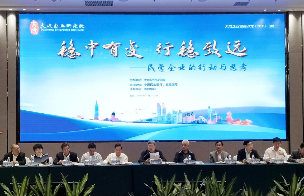 11月1日—2日,由大成企業研究院主辦的2018大成民營企業首腦沙龍在廈門泰地萬豪酒店舉行。來自全國的近百位民營企業家圍繞“穩中有變,行穩致遠,民營企業的行動與思考”這一主題探討交流了新形勢下民營經濟發展之路。傅軍總裁應邀出席本次沙龍,并作為企業家代表作了重點發言。