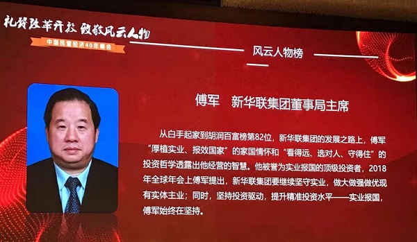 10、傅軍總裁以卓越的商業(yè)成就和強(qiáng)烈的社會(huì)責(zé)任感入選中央統(tǒng)戰(zhàn)部、全國(guó)工商聯(lián)評(píng)定的“改革開放40年百名杰出民營(yíng)企業(yè)家”和“中國(guó)民營(yíng)經(jīng)濟(jì)40年風(fēng)云人物”。
