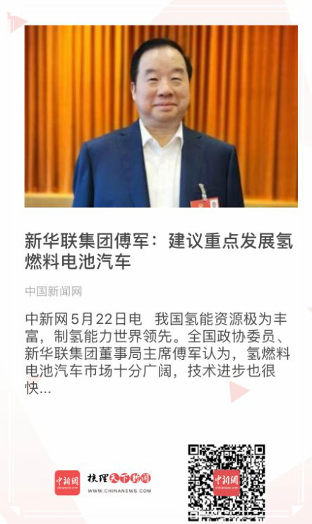 中新網5月22日電 我國氫能資源極為豐富,制氫能力世界領先。全國政協委員、新華聯集團董事局主席傅軍認為,氫燃料電池汽車市場十分廣闊,技術進步也很快速,因此建議國家從能源安全的戰略高度更加重視氫能開發,系統推進氫燃料電池汽車的研發與生產,盡快躋身世界前列。