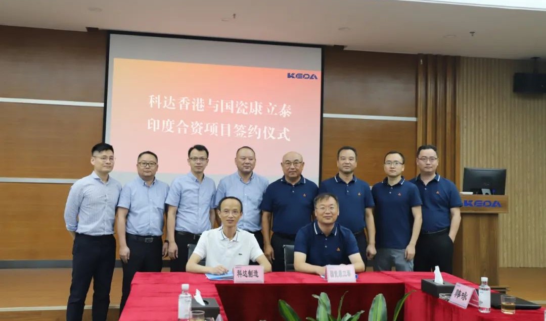7月7日,科達潔能全資子公司科達香港與國瓷康立泰在科達國際辦公大樓舉行了印度合資項目的簽約儀式??七_潔能總經理楊學先和國瓷材料副總經理司留啟分別代表雙方在協議上簽字。根據協議內容,國瓷康立泰將增資科達印度公司。