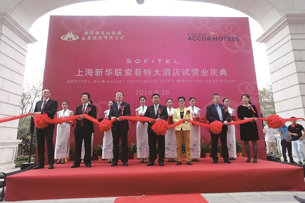 中國旅游協會副會長、新華聯文旅發展公司總經理蘇波,中國旅游飯店業協會秘書長許京生,上海虹橋商務區管理委員會副主任費小妹,恒豐銀行上海分行行長唐金文,新華聯文旅發展公司常務副總經理李建剛,新華聯文旅發展公司副總經理兼新華聯酒管公司董事長李妮妮,雅高大中華區總經理Christophe Lauras 等共同為試營業儀式剪彩。