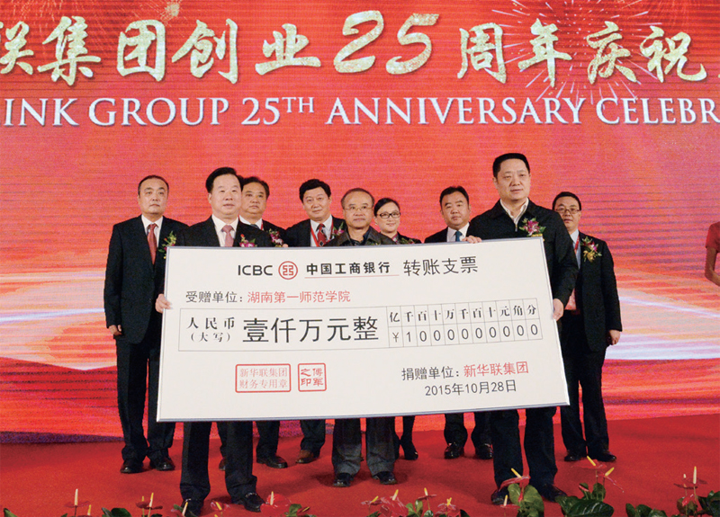 2015年 向北京、內蒙古、湖南等地10所學校捐款1000萬元